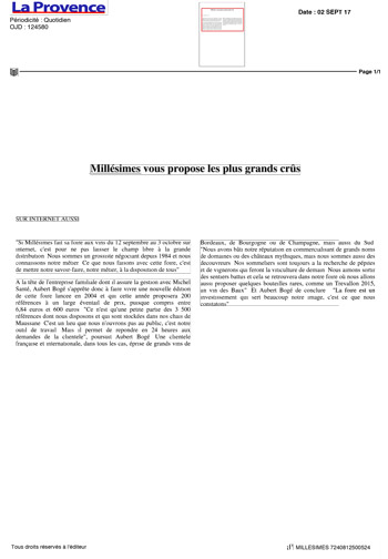 Découvrez ici notre rubrique dédiée aux articles parus sur la société MILLÉSIMES.